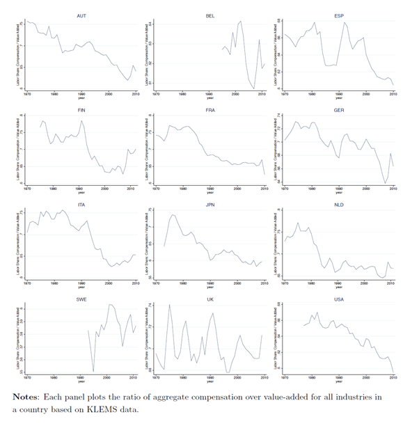 Figure 13: International Comparion – Labour Share by Country, from Autor et al., 2015