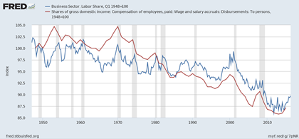 Data on the US labour share, including from more recent years, are provided by the Federal Reserve Bank of St Louis: